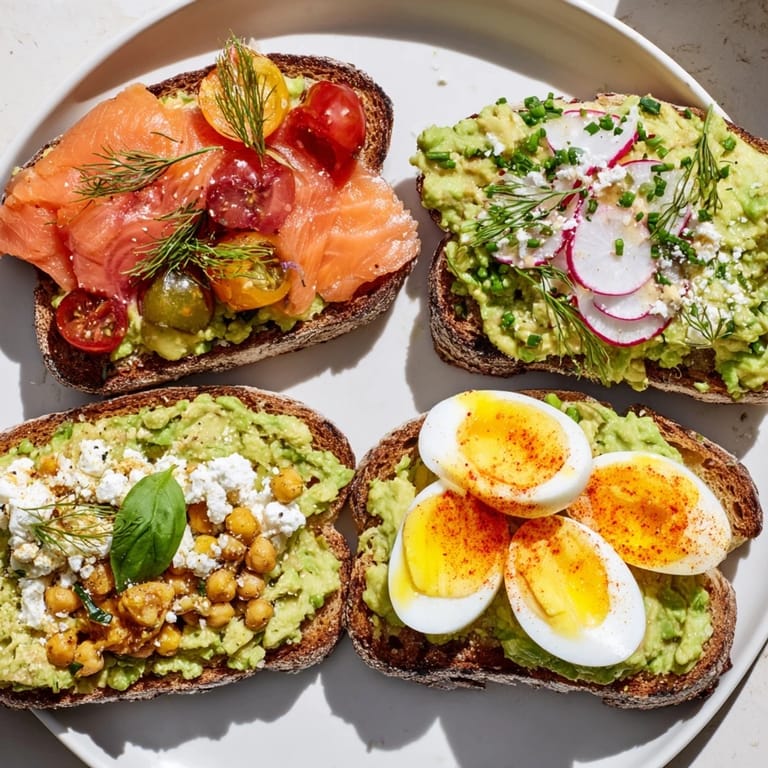 Save to Pinterest A vibrant collection of avocado toast variations, perfect for quick snacks, light lunches, or stylish starters.