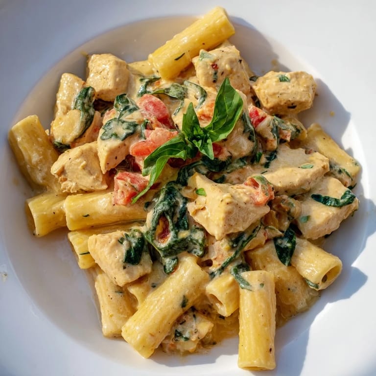 Once you get comfortable with this recipe, you'll start seeing it as a template rather than a rulebook. Swap chicken thighs in for juicier, more forgiving meat, or honestly, throw in rotisserie chicken if you're exhausted and don't feel like cooking chicken from scratch. Sun-dried tomatoes add complexity without requiring a second trip to the store, and if spinach isn't your thing, arugula wilts in just as prettily. For lighter nights, half-and-half works instead of heavy cream, though you'll lose a tiny bit of that luscious mouthfeel. The beauty is that this dish stays itself no matter what you adjust.