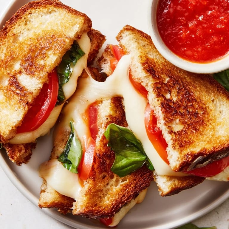 Save to Pinterest The idea hit me during a chaotic weeknight when I was staring at leftover ingredients from a weekend dinner party. I had half a loaf of sourdough, some mozzarella that needed using, and a container of cherry tomatoes. My seven year old was requesting grilled cheese for the third night in a row, and I wanted something that felt like dinner, not just a cafeteria standby. I started layering, and suddenly I was making Caprese salad meets grilled cheese. When I sliced those sandwiches into strips and set them down with marinara, the table went silent. My daughter actually said, "This feels like restaurant food."