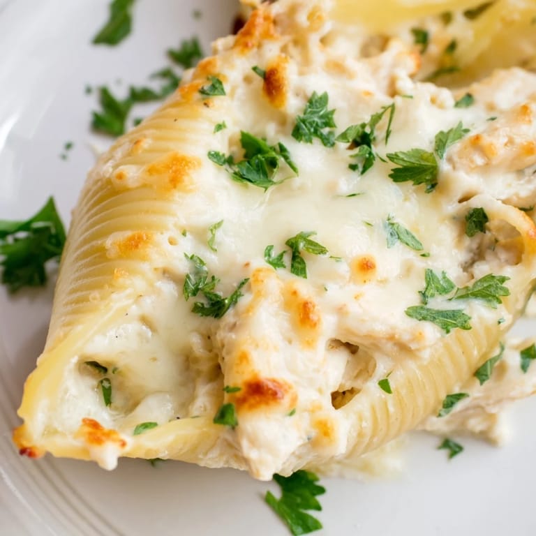 Save to Pinterest The kitchen smelled like butter and garlic when I first tried stuffing pasta shells with anything other than the usual spinach ricotta. My daughter had asked for something with chicken and cheese, something warm she could eat with a fork while doing homework. I boiled the shells a little too soft that first time, and they tore as I stuffed them, but once they baked under all that cream and melted cheese, nobody noticed. We ate straight from the baking dish, and she declared it better than any restaurant pasta.