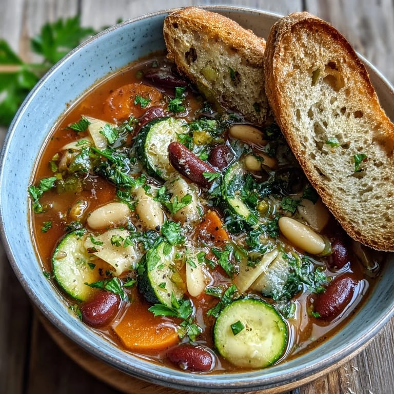 Save to Pinterest My grandmother used to say that a minestrone is never the same twice because it depends on what the garden gives you. I remember her standing over a steaming pot with a wooden spoon insisting that the secret was always in the ratio of beans to greens. Now when I cook this I feel her presence in the rhythmic chopping and the steam rising from the bowl.