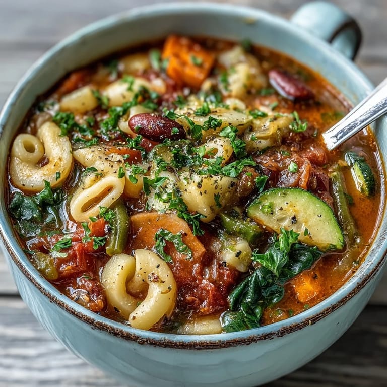 Save to Pinterest My kitchen smelled like garlic and simmering tomatoes before I even realized I'd been stirring for twenty minutes. I was making minestrone on a gray afternoon when I had too many vegetables and no plan, just muscle memory from watching my neighbor chop zucchini into her pot years ago. She never measured anything, just tossed handfuls and hummed. That soup taught me more about cooking than any recipe ever did.