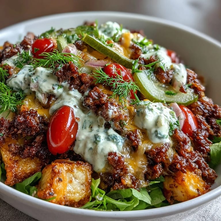 Save to Pinterest I stumbled onto this concept during a frantic week when I needed something burger-like but forgot to buy buns. The meat hit the skillet with that satisfying sizzle that makes your stomach growl, and suddenly I was tossing whatever crisp vegetables I had into bowls instead. My husband looked skeptical until he took that first bite—eyes wide, reaching for seconds. Now these bowls have become our Wednesday night fallback, faster than delivery and somehow more satisfying.