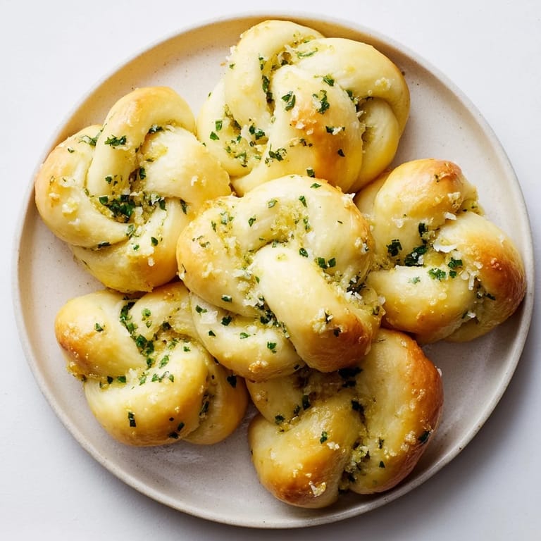 Save to Pinterest Soft, fluffy knots of dough brushed with aromatic garlic butter—perfect as a quick snack or appetizer for any occasion.