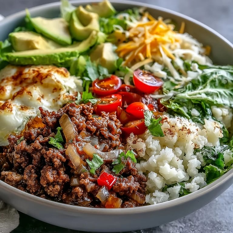 Save to Pinterest My skillet was too hot, the beef sizzled louder than I expected, and the smell of cumin hit me before I even finished chopping the bell pepper. I was trying to lighten up taco night without losing any of the flavor, and this bowl turned into one of those happy accidents that stuck around for good. The cauliflower rice soaked up every bit of those smoky, spicy juices, and I forgot I was even skipping the tortilla. It felt like I'd cracked a code I didn't know I was chasing.