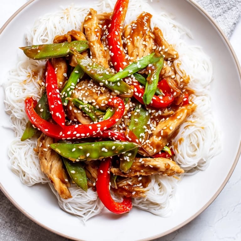 Save to Pinterest I stumbled on this recipe one Wednesday night when I had leftover rice noodles sitting in the fridge and chicken thighs I'd forgotten to use. The idea of Mongolian-style flavors over noodles instead of rice felt like a risk, but the smell of garlic and ginger hitting hot oil convinced me I was onto something. My kitchen filled with that sticky-sweet sesame aroma, and by the time I tossed everything together, I knew this would become a weeknight staple. It's bold, satisfying, and comes together faster than ordering takeout. Sometimes the best recipes are born from leftovers and a little hunger-driven creativity.