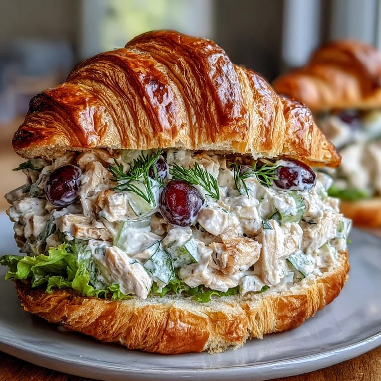 Save to Pinterest There's something about the sound of a picnic basket being packed that makes me want to cook something special. Last summer, my neighbor mentioned she was tired of the same sad sandwiches for her outdoor gatherings, and I found myself suggesting chicken salad in croissants—something I'd been quietly perfecting in my own kitchen. The moment she bit into one at the park, with grape juice running down her chin and the sun hitting that golden croissant just right, I knew this recipe deserved to become a regular thing.