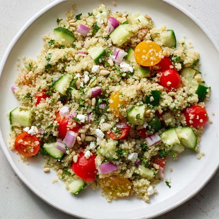 This salad not only tastes great fresh but also benefits from resting in the fridge, allowing the lemon vinaigrette to fully infuse the quinoa and vegetables. Its balance of textures and flavors makes it a standout option for any meal or gathering.