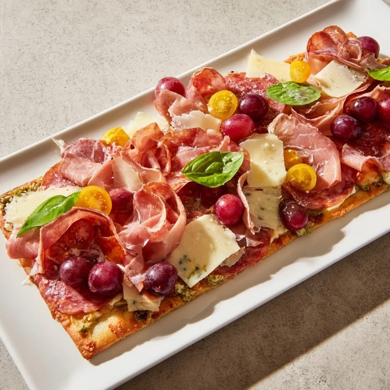 Save to Pinterest The first time I assembled a spread like this, I wasn't thinking of it as a recipe at all—just a way to feed a crowd without fussing over plated courses. I'd grabbed three rectangular flatbreads from the bakery section, tossed them with garlic oil, and the moment they came out of the oven smelling toasty and warm, I realized I had the foundation for something special. Within minutes, I was layering prosciutto and brie across the bread, tucking olives into the gaps, and my friends kept reaching for pieces before I'd even finished arranging everything. That's when it clicked: this wasn't complicated, it was just generous.
