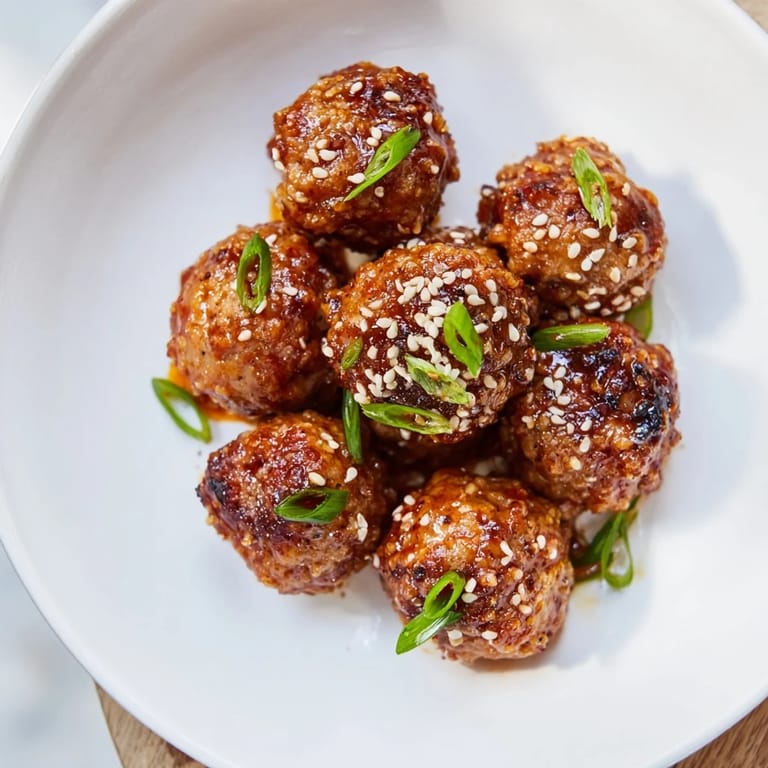 Save to Pinterest Juicy meatballs glazed with a sweet and spicy sriracha-honey sauce, perfect as crowd-pleasing appetizers or party bites.