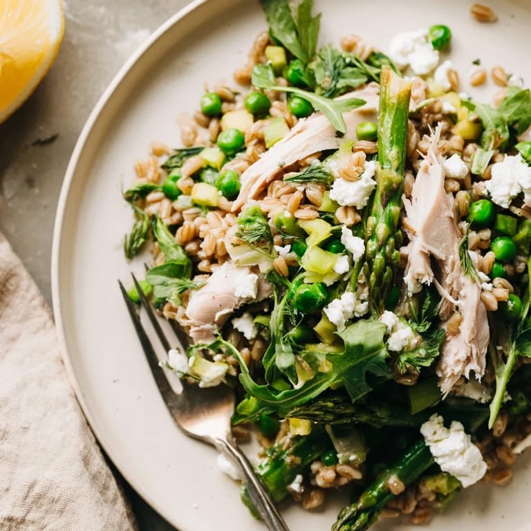 Save to Pinterest The first warm day of spring always sends me scrambling for something lighter, something that says winter is finally over. I threw this farro salad together on a Tuesday when I couldn't bear another heavy stew. The way those bright green vegetables pop against the chewy grains makes the whole bowl feel like sunshine.