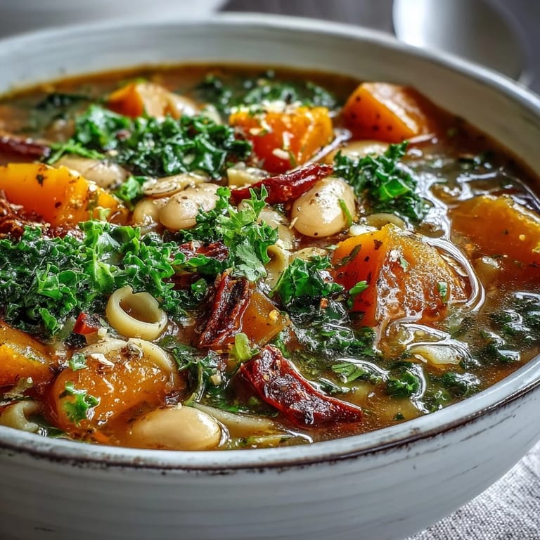 Save to Pinterest The first time I made winter minestrone, snowflakes were dancing outside my kitchen window, transforming the world into a quiet wonderland. My fingers were cold despite the heating, and I craved something that would warm me from the inside out. There's something magical about the way the kitchen fills with the earthy aroma of herbs and vegetables simmering together. That day, this soup became my personal remedy against winter's chill, a tradition I've maintained ever since.